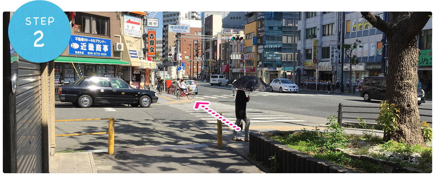STEP3の横断歩道を渡った後、左方向に直進してください。